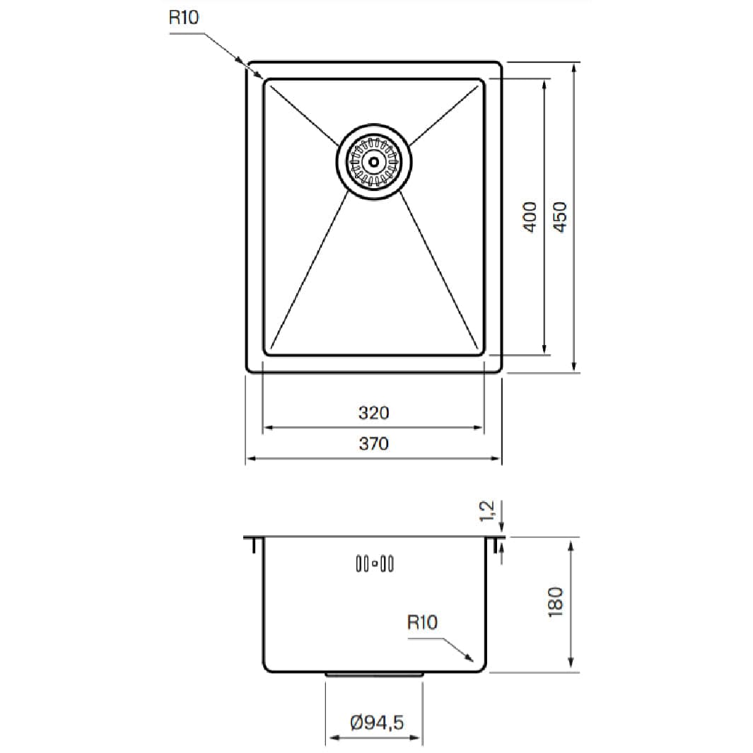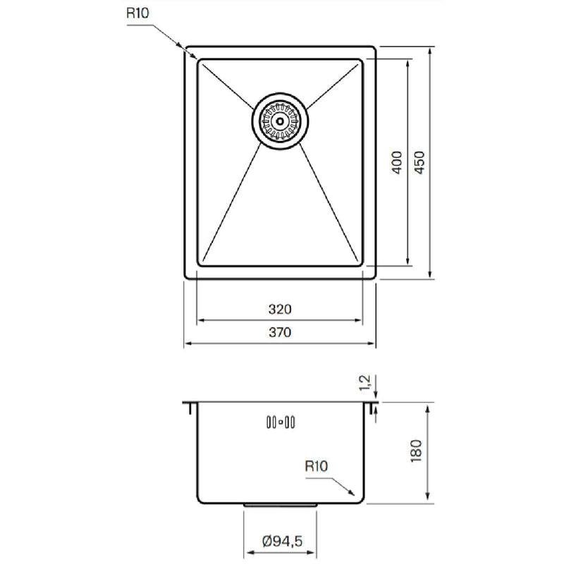 Tapwell TA3040 PVD Kjøkkenvask B37xD45cm