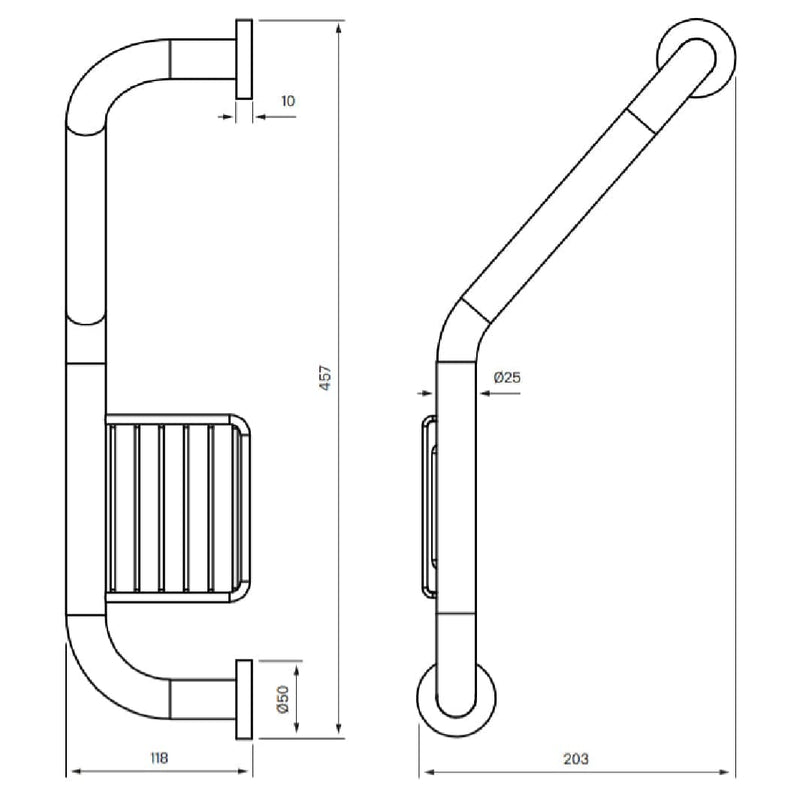 Tapwell TA808 Badekarhåndtak L457mm, med Såpekopp