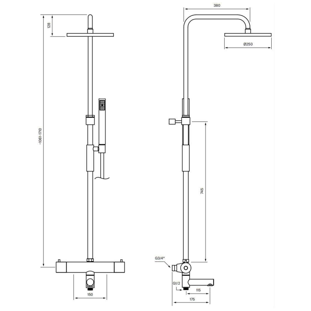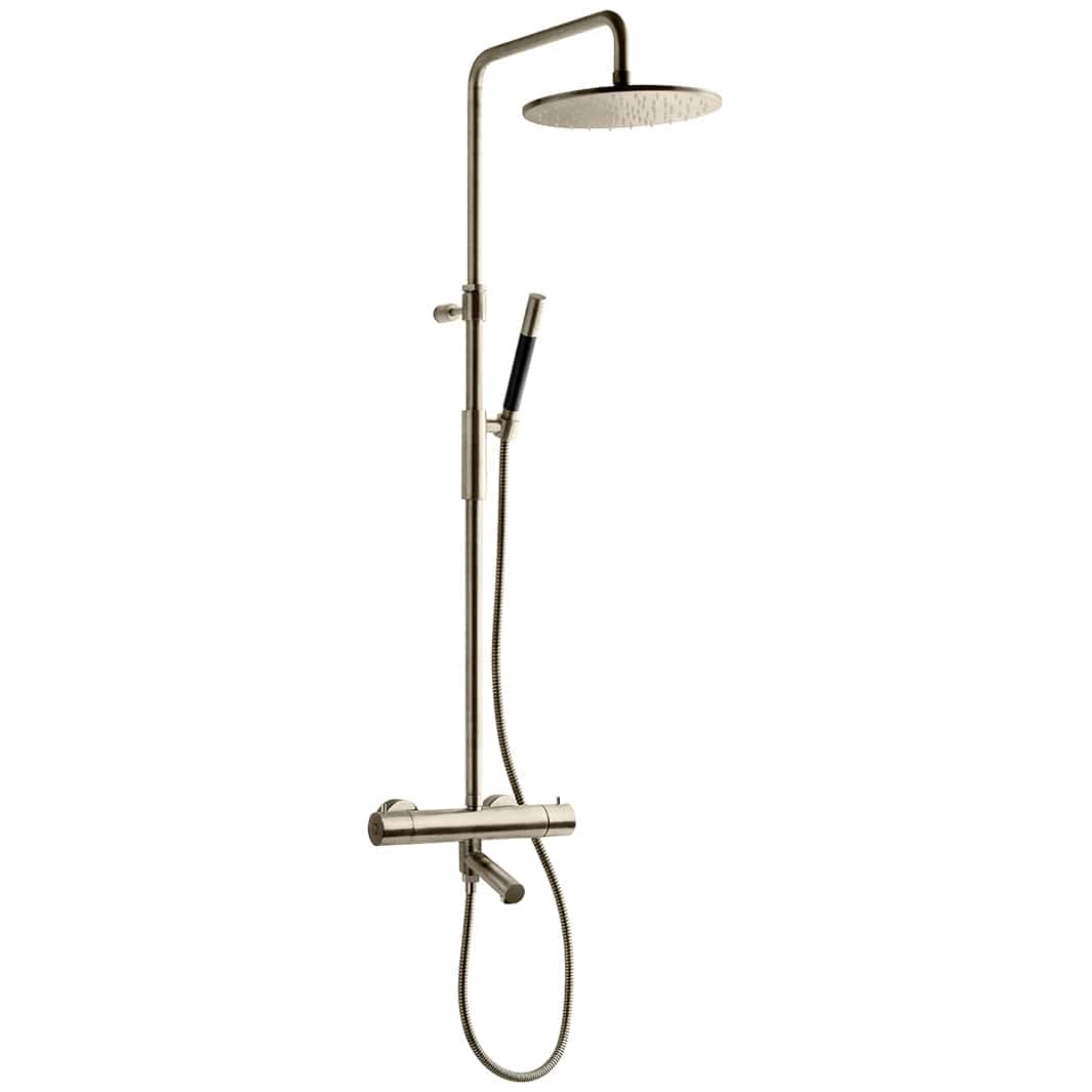 Tapwell TVM2200 er en elegant og funksjonell takdusjpakke utviklet for badekar. Dusjen leveres med trykk- og termostatstyrt blandebatteri, fylletut og teleskopstang for enkel justering av høyde. Den svingbare tuten med integrert omkaster lar deg enkelt veksle mellom takdusj, hånddusj og badekarfylling.