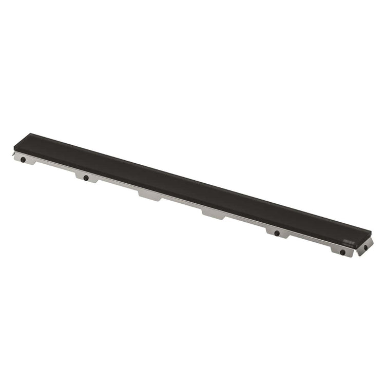 Designrist for TECEdrainline dusjrenner laget av rustfritt stål med frostet glassoverflate.