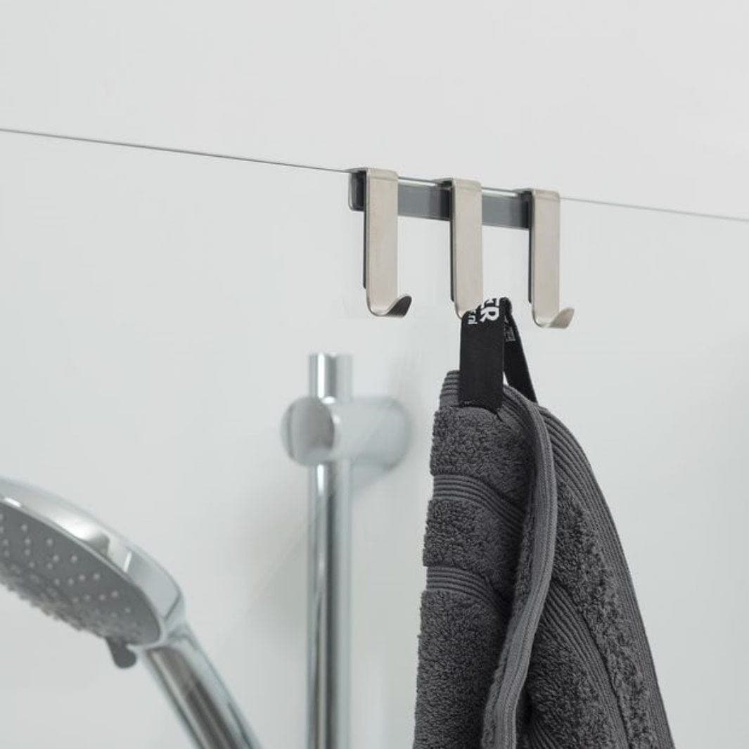 Tiger Basic kroklist for dusj, laget i børstet rustfritt stål, kan henges over dusjdøren, dusjveggen og andre glasspaneler med en tykkelse på 6-8 mm.