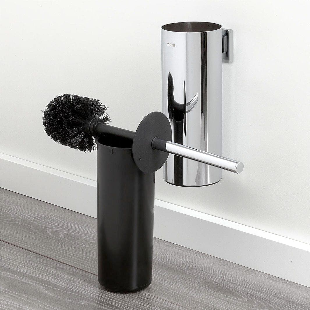 Denne Tiger Dock toalettbørsten med holder er designet for å være enkel og hygienisk i bruk, og er laget i materialer av høy kvalitet med en finish i krom (1324930346). Den fullengdes børsteholderen er for eksempel utstyrt med en indre holder i plast, og toalettbørsten har et fleksibelt lokk. Dock-serien består av et bredt utvalg av tilbehør for baderom og toalett, som alt er i matchende design. Toalettbørsten med holder kan også monteres ved hjelp av TigerFix type 1, et patentert klebesystem som gjør at du raskt og enkelt kan feste tilbehør på jevne, harde flater. Boring er ikke nødvendig, og tilbehøret kan enkelt fjernes uten å etterlate merker eller skader på overflaten. TigerFix må kjøpes separat. Dock-serien fra Tiger er en serie med luksustilbehør hvor design, kvalitet og funksjonalitet er kombinert uten at det er spart på noe. Designet er karakterisert av den lekne kombinasjonen av firkantede elementer og vennlige runde former. Dette gir baderommet ditt en enda mer luksuriøs stil.