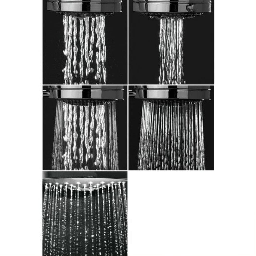 - Hånddusjen kan justeres med fem ulike vannstråler: Full, livlig, massasje og en kombinasjon av disse