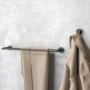 Krokerekke med runde former plass til 4 håndklær. Monteres med dobbeltsidig teip. Klar til å henges opp, men husk å vaske og la tørke før du fester på produktet. Finnes i krom (1507730346), svart matt (1507730746) og matt krom (1507730946).
