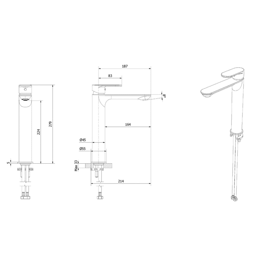 Et rett, stilrent og lekkert servantbatteri i høy modell. Dette servantbatteriet er i en høy modell og passer utmerket til bolleservanter og andre toppmonterte vasker på badet. Ønsker du et moderne, men tidløst, servantarmatur er dette et godt valg for deg.