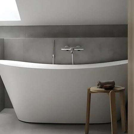 Vikingbad Holviga er et stilrent, helstøpt badekar med myke linjer og kompakt bredde – ideelt for deg som ønsker et moderne uttrykk uten å ofre komfort. Karret har god innvendig dybde og ergonomisk utforming som gjør det behagelig å sitte i, også for to.