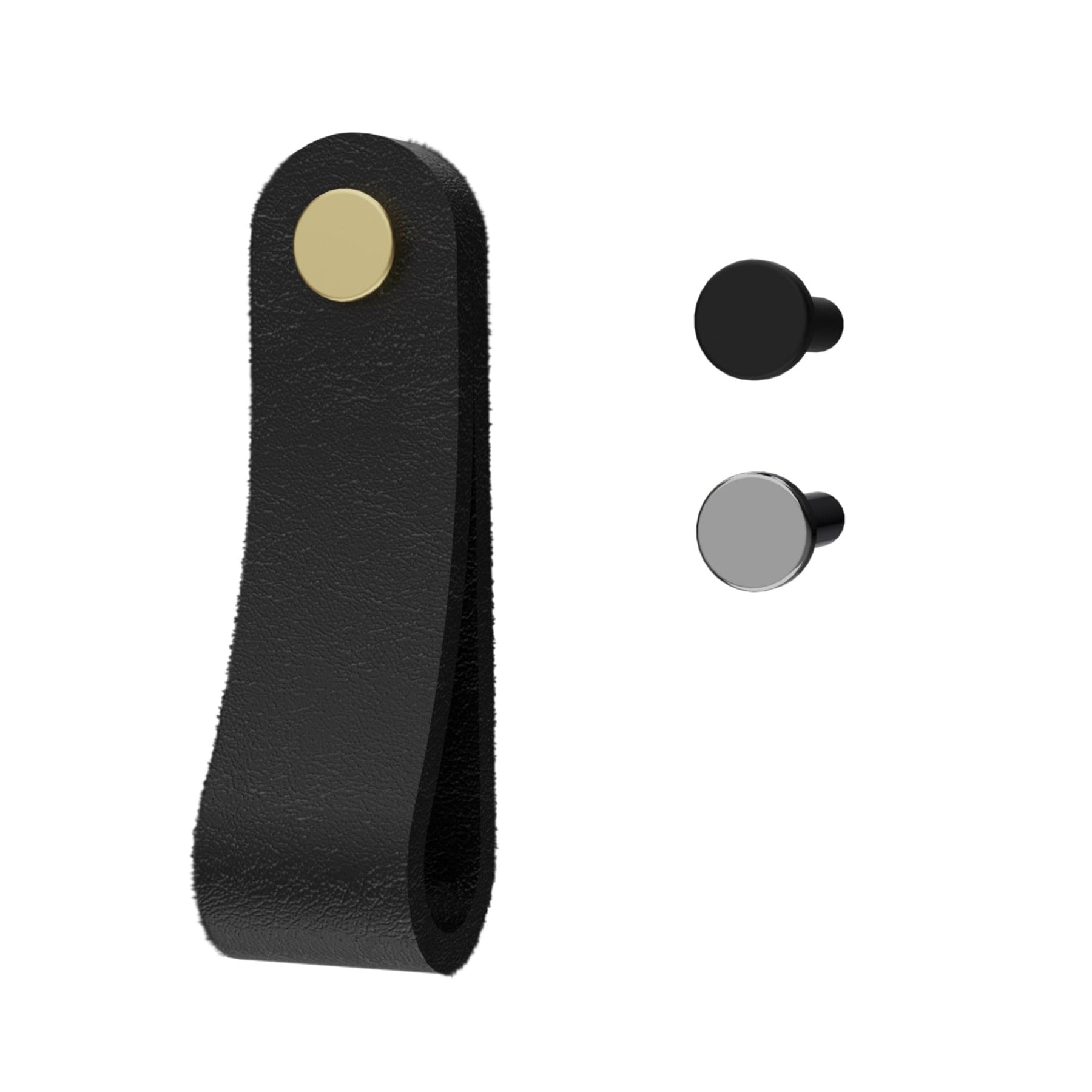 I pakken medfølger 3 sett med festeskruer, og du velger selv om du vil montere skinnreimen med fester i krom, gull eller sort matt.