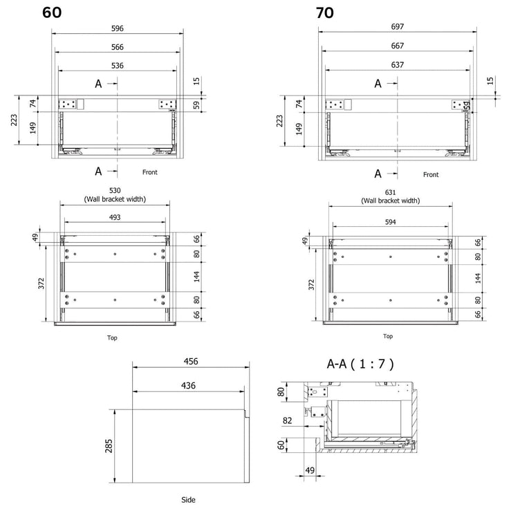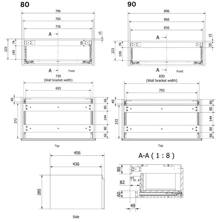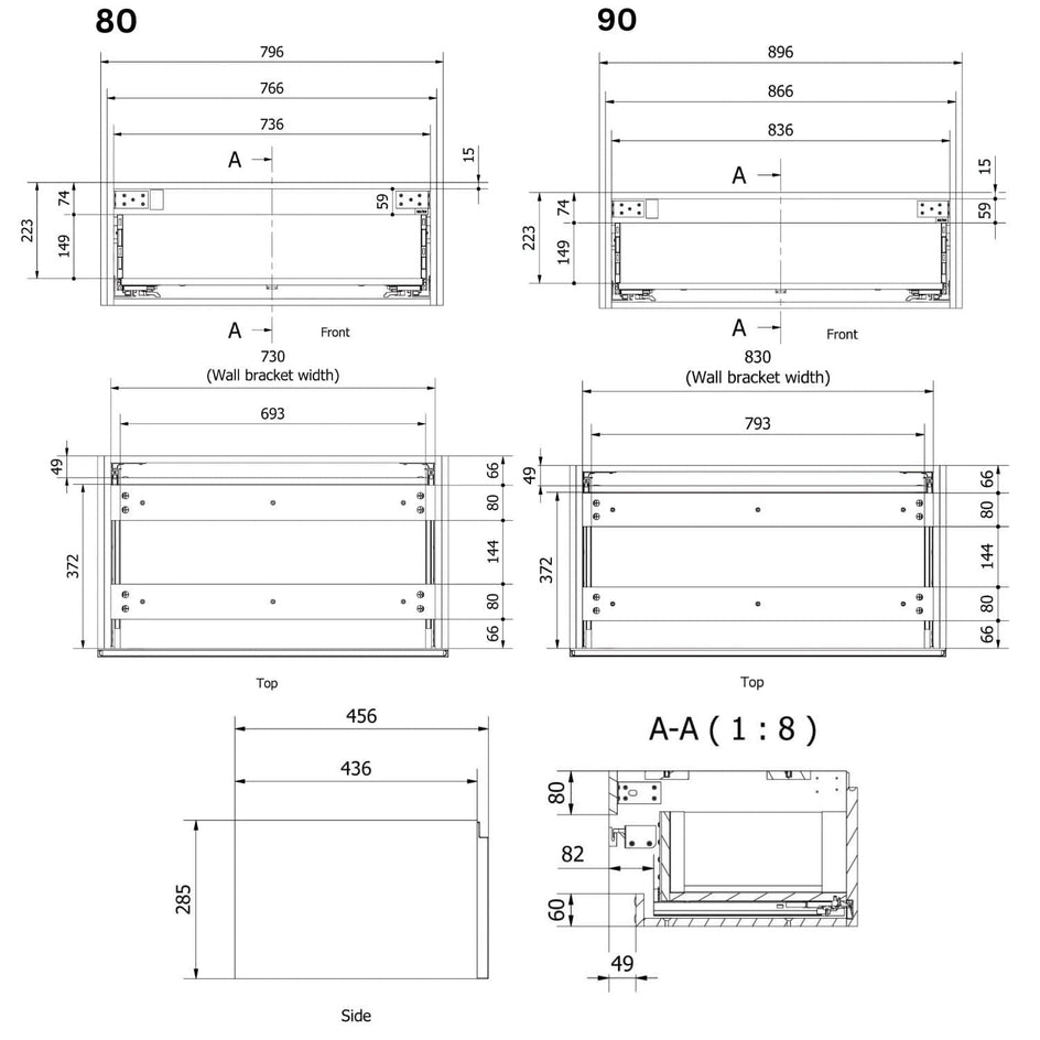 Vikingbad Sideskap stav MIE DEMI - Mål: B(60-90)xH46xD29 cm