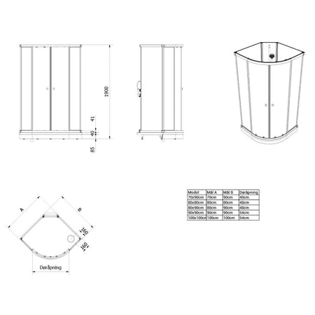 Produkt Id 8350040948935 Merke Vikingbad Art.nr. Profilfarge Størrelse Glass VB-115593 Hvit matt 80x80cm Klart glass VB-115584 Hvit matt 80x80cm Hvit glass VB-115596 Hvit matt 90x90cm Klart glass VB-115587 Hvit matt 90x90cm Hvit glass VB-115592 Hvit matt 100x100cm Klart glass VB-115583 Hvit matt 100x100cm Hvit glass Vis mer