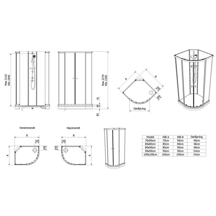 Produkt Id 8349583278279 Merke Vikingbad Art.nr. Profilfarge Størrelse Glass VB-115595 Hvit matt 80x80cm Klart glass VB-115586 Hvit matt 80x80cm Hvit glass VB-115598 Hvit matt 90x90cm Klart glass VB-115589 Hvit matt 90x90cm Hvit glass VB-115591 Hvit matt 100x100cm Klart glass VB-115582 Hvit matt 100x100cm Hvit glass Vis mer