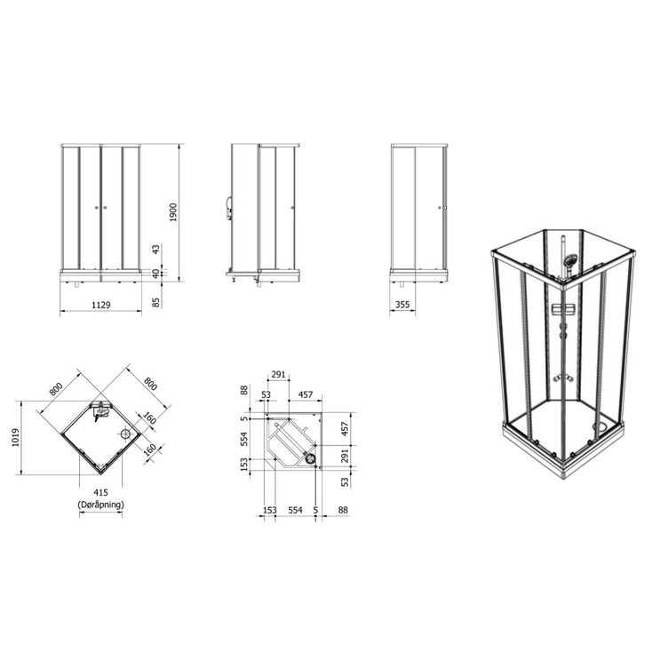 Produkt Id 8349486088391 Merke Vikingbad Art.nr. Profilfarge Størrelse Glass VB-117796 Hvit matt 80x80cm Hvit glass VB-117797 Hvit matt 90x90cm Hvit glass