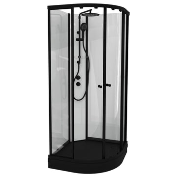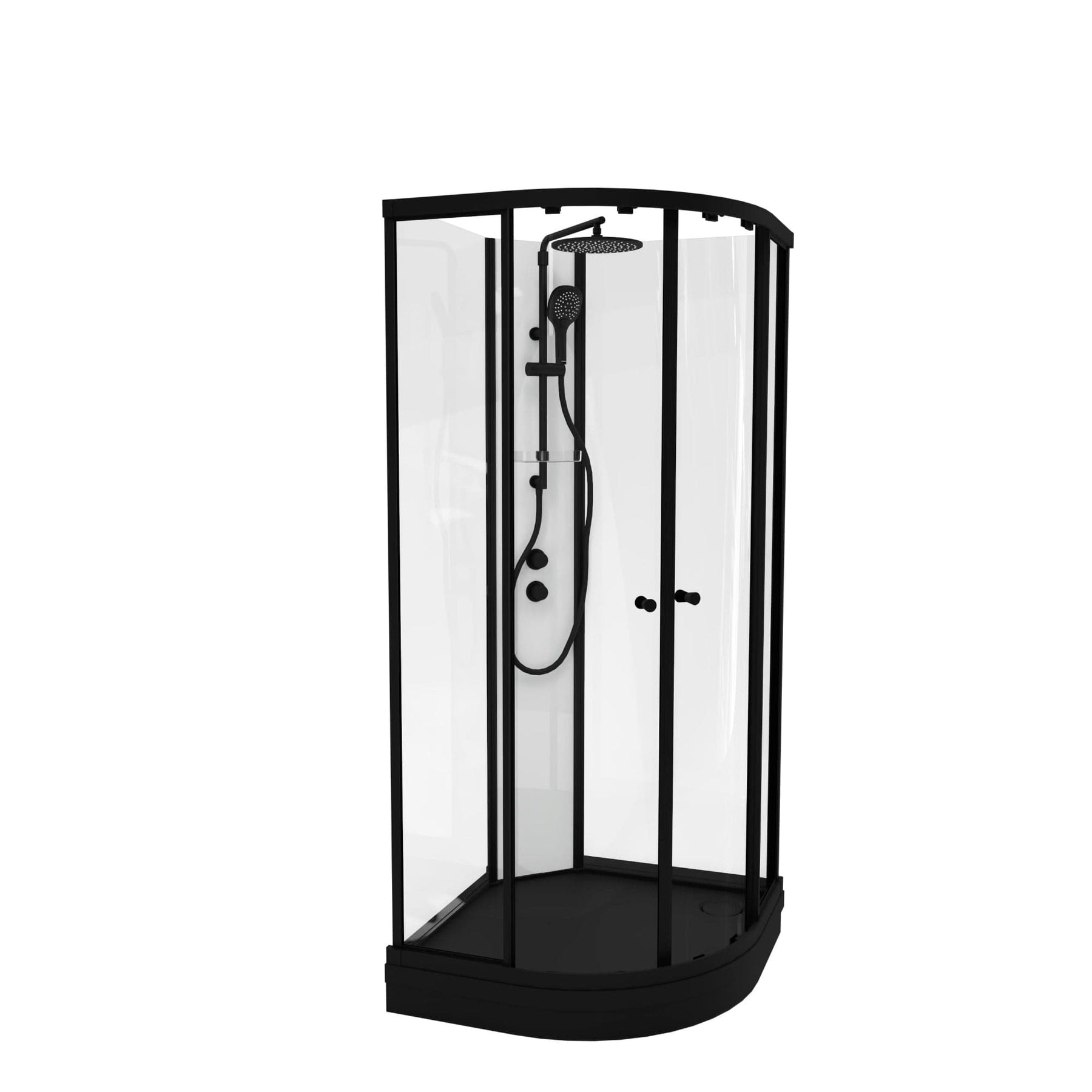 Vikingbad Sofia Buet Dusjkabinett med svart matt profiler og hvit Pluss dusjsøyle