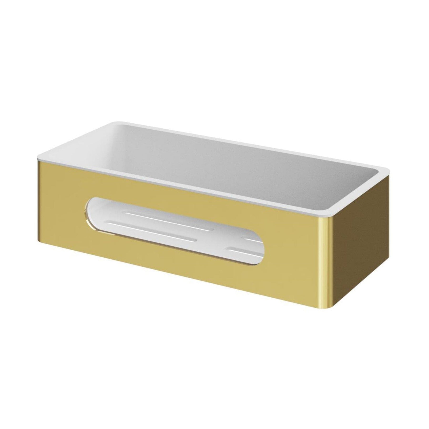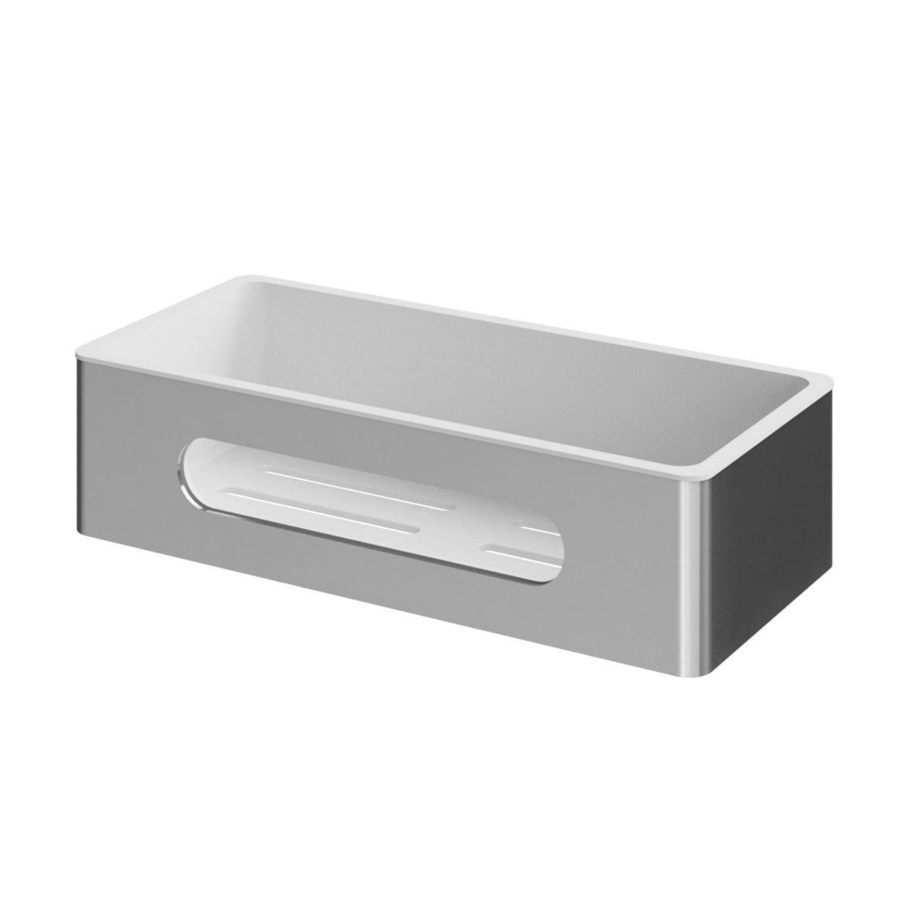 En elegant og praktisk hylle til å feste på vegg i dusjen. Den har hull i bunn, slik at det ikke blir liggende vann og såperester i hyllen.